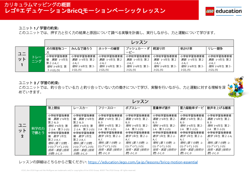 レゴ エデュケーションのサイトに、低学年用、中学年用、高学年・中高向けの各レッスンユニットが用意され、それぞれ7つのレッスンプランが提供されています。レッスンプランはダウンロードして使用したり、オンラインで使用することができます。