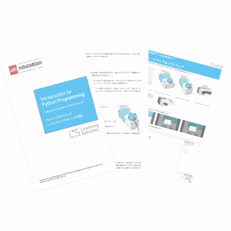 SPIKEプライムを使ってPythonプログラミング言語を学ぶための先生用のレッスンガイドと生徒用のワークシートです。CD-ROMにPDFファイルを収録する形でのご提供です。