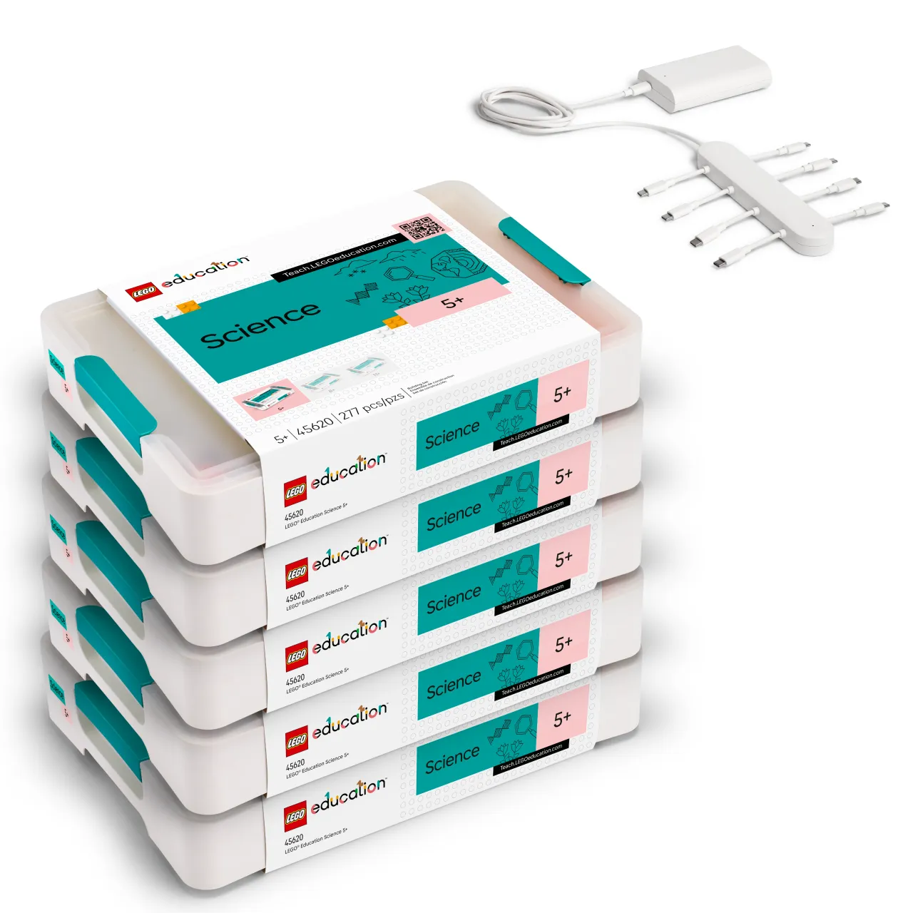 45620 レゴエデュケーションサイエンス5+が5セットにマルチチャージャーとACアダプタがセットになったお得な限定パック。