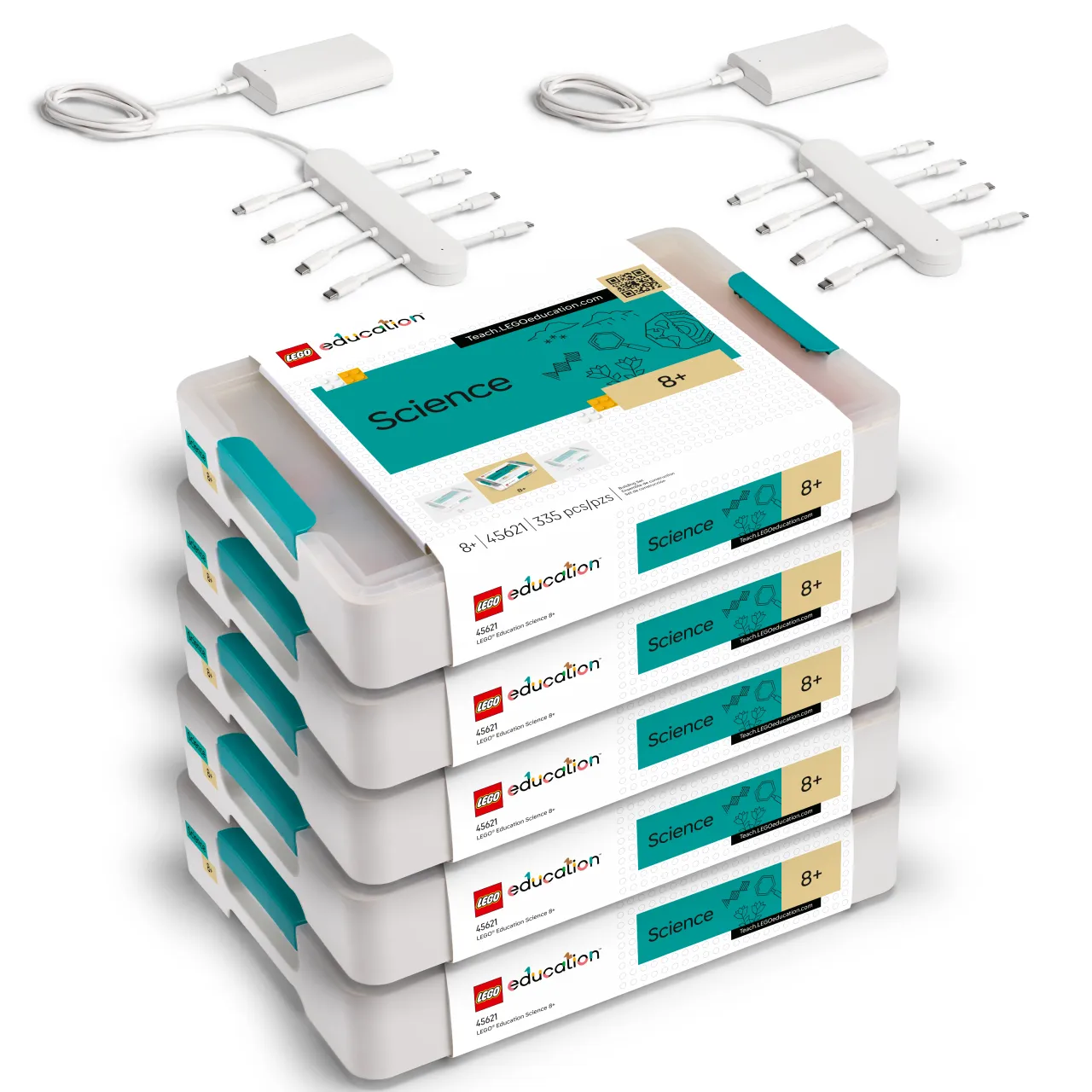 45621 レゴエデュケーションサイエンス8+が5セットにマルチチャージャーとACアダプタが各2つセットになったお得な限定パック。