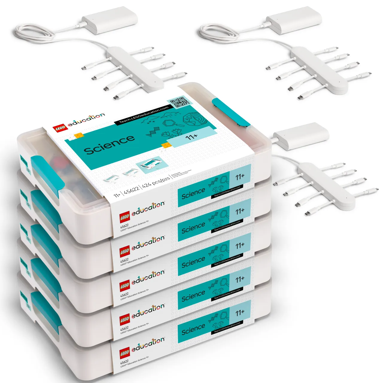 45620 レゴエデュケーションサイエンス11+が5セットにマルチチャージャーとACアダプタが各3つセットになったお得な限定パック。